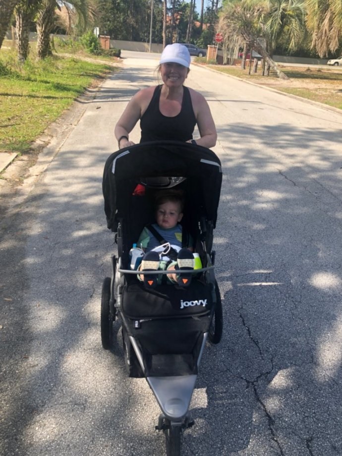 At 9:00 Erin takes over and I start working from home online. I bought a new printer since our old one finally stopped printing. I have it set up on the floor behind me so that I can print anything I need and its right there. This also is a problem because the power button is a bright blue light and every time Wesley walks past it he just loves to press that pretty blue button. Most morning Erin will take Wes for a run in the jogger while I am working.