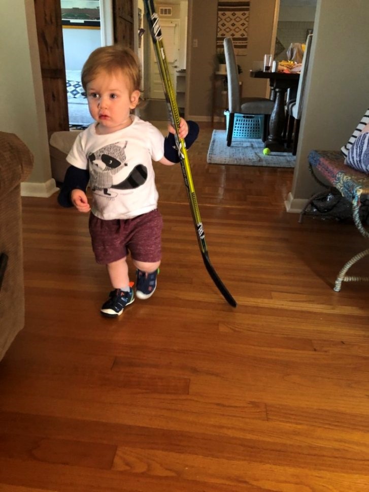 The schedule at least lets us know who has Wesley duty when. So I normally start my day with a cup of coffee while she is working and I get maybe thirty minutes until Wes starts to wake up. When he wakes up I go change him and feed him his morning milk. We either have some local news on or some acoustic guitar music for Wes so he can strum his guitar. Right now he is torn between his guitar and his new hockey stick. It’s very much like when Andy from Toy Story got Buzz Lightyear and started playing with it more than Woody. He loves his hockey stick. Every morning he goes over to where he last left it and waved goodbye to it. He also uses two koozies as hockey gloves (we think). I try as hard as I can to entertain this little guy. Whether its chasing him with his shark puppet, helping him play his guitar, listening to records in our “record room”, chasing him around with our tiny drone, checking the garden we just built and planted vegetables in (I named it ‘The Parden’), going outside, playing on the slide, or his favorite thing, watching me play hockey on the Xbox. Every time I score a goal we both celebrate by yelling “Wooooooo”.